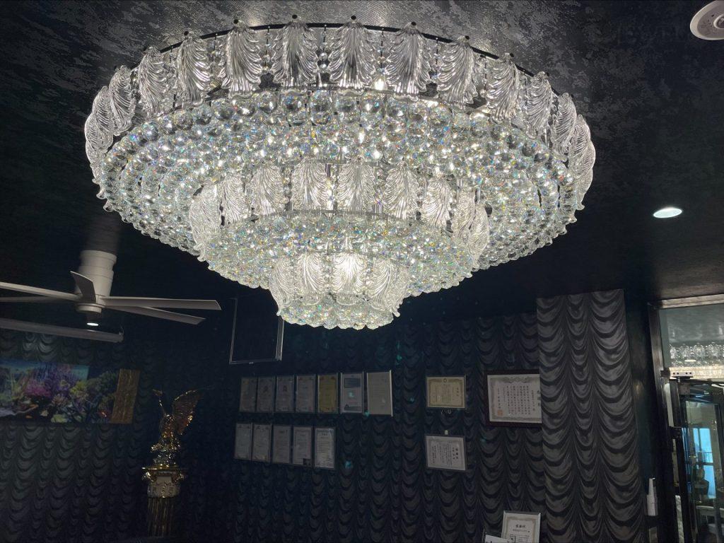 【LA LUCE】クリスタルシーリングシャンデリア 40灯(W1310×H530mm)(カラー:クローム、パーツ:アスフールクリスタル)の納品をさせていただきました。