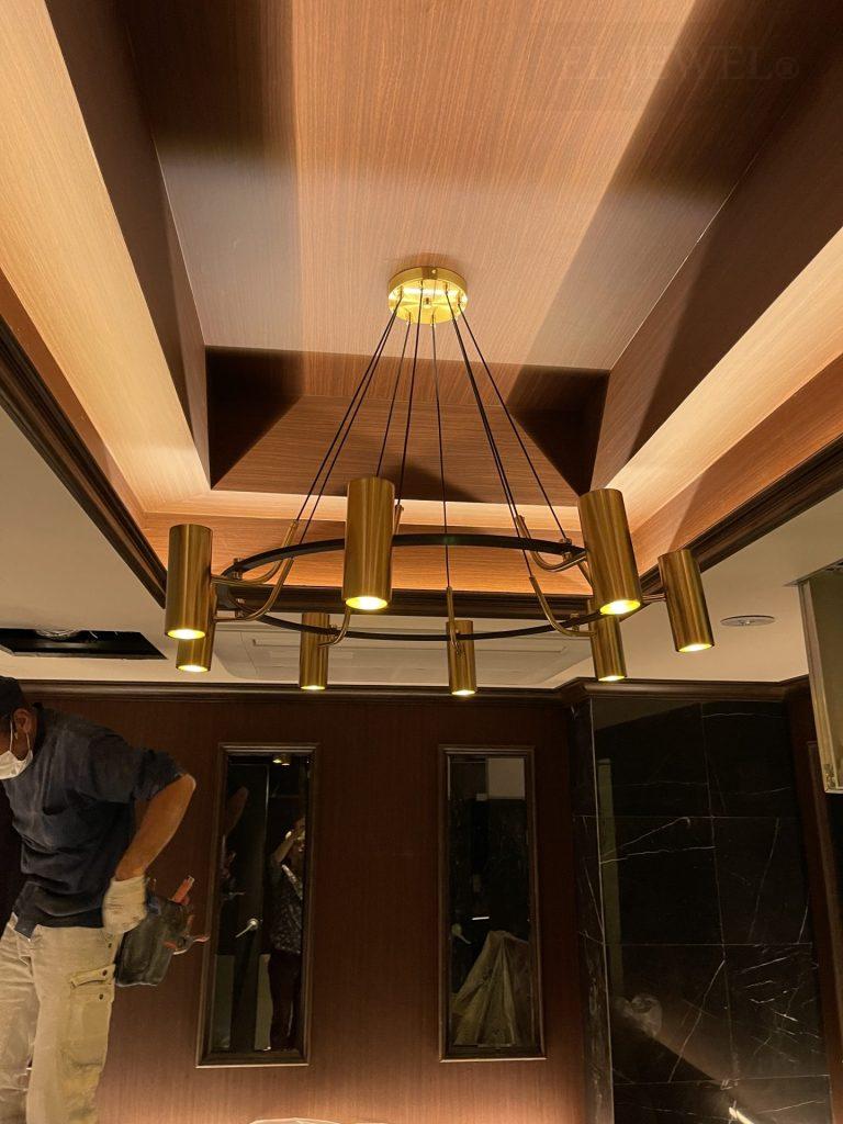 私たちは銀座の名門クラブ様にデザイン照明シャンデリアを特注で製作し、納品させていただきました。お客様の理想を具現化し、空間を華やかに彩る照明を提供することが、私たちのプロフェッショナルな使命と考えています。