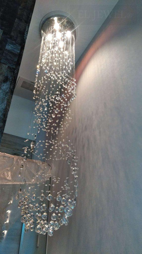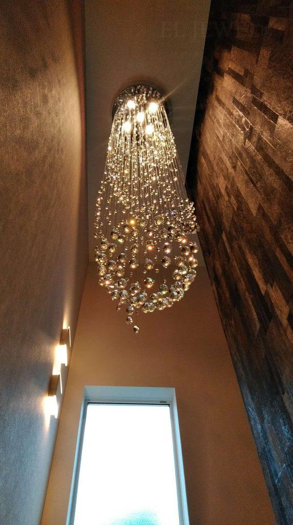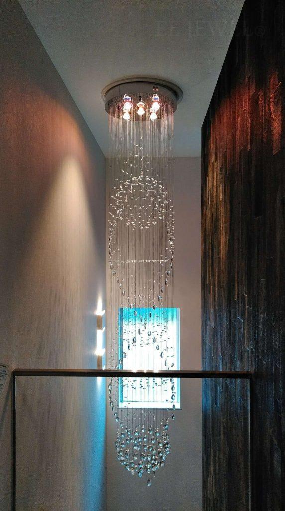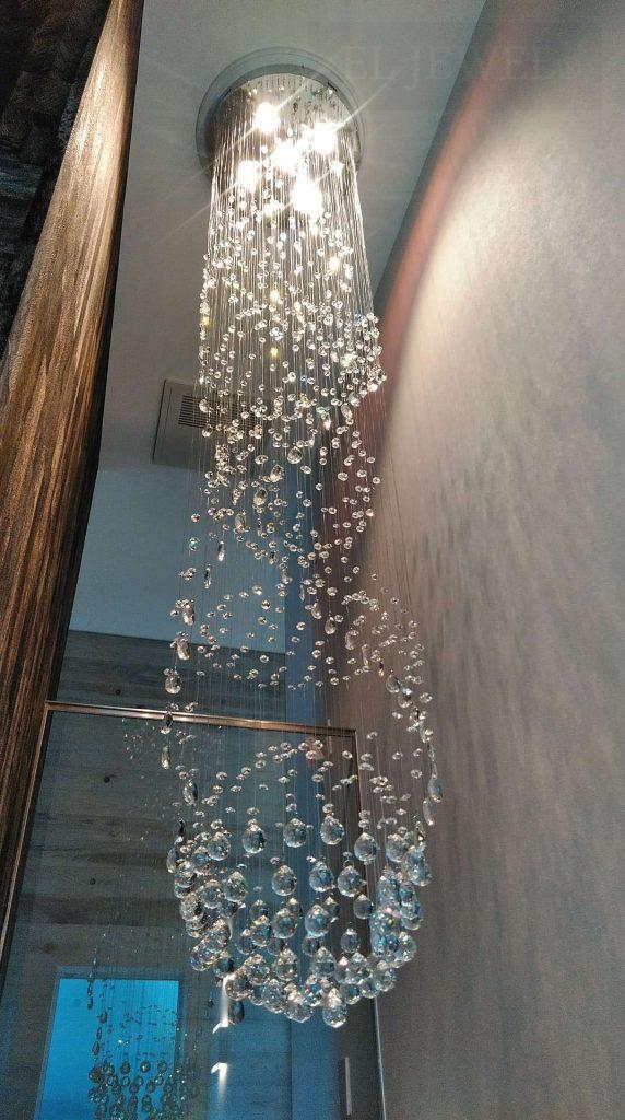 モダンな吹き抜けにクリスタルワイヤーアートシャンデリアを納品しました。