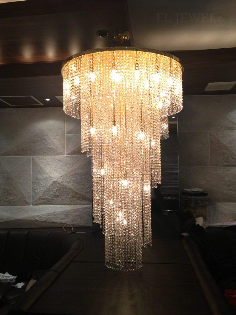 六本木のクラブ様に大型クリスタルラインのシャンデリアを納品しました。