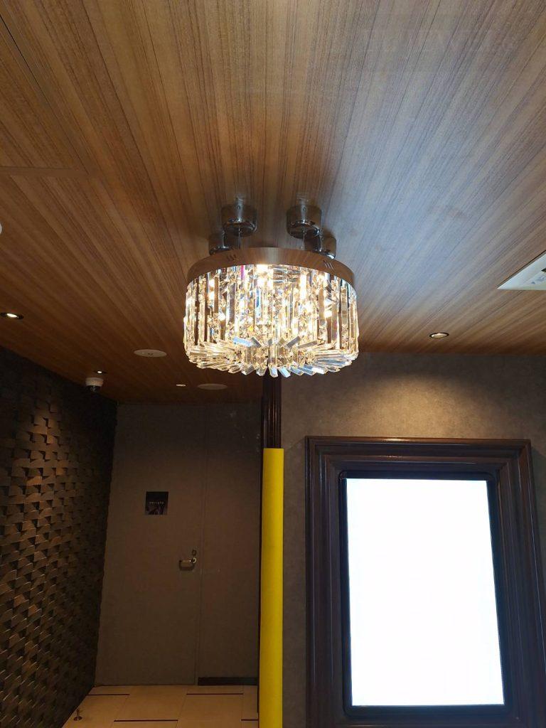 入口からエントランスをぬけて受付までの間を、お客様と直線状に目があわないよう、クリスタルシャンデリアを敷居として活用できるタイプのものが注目されています。