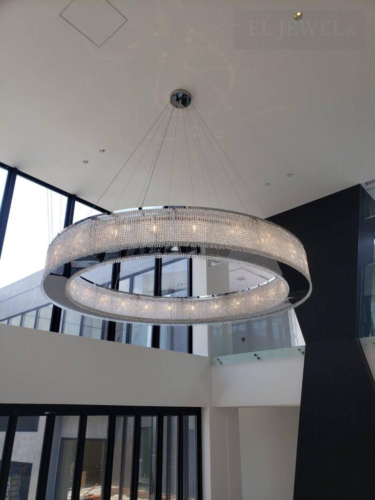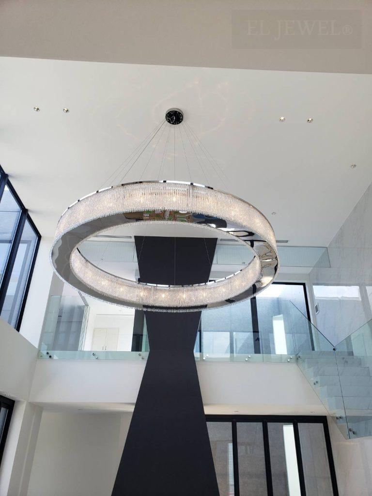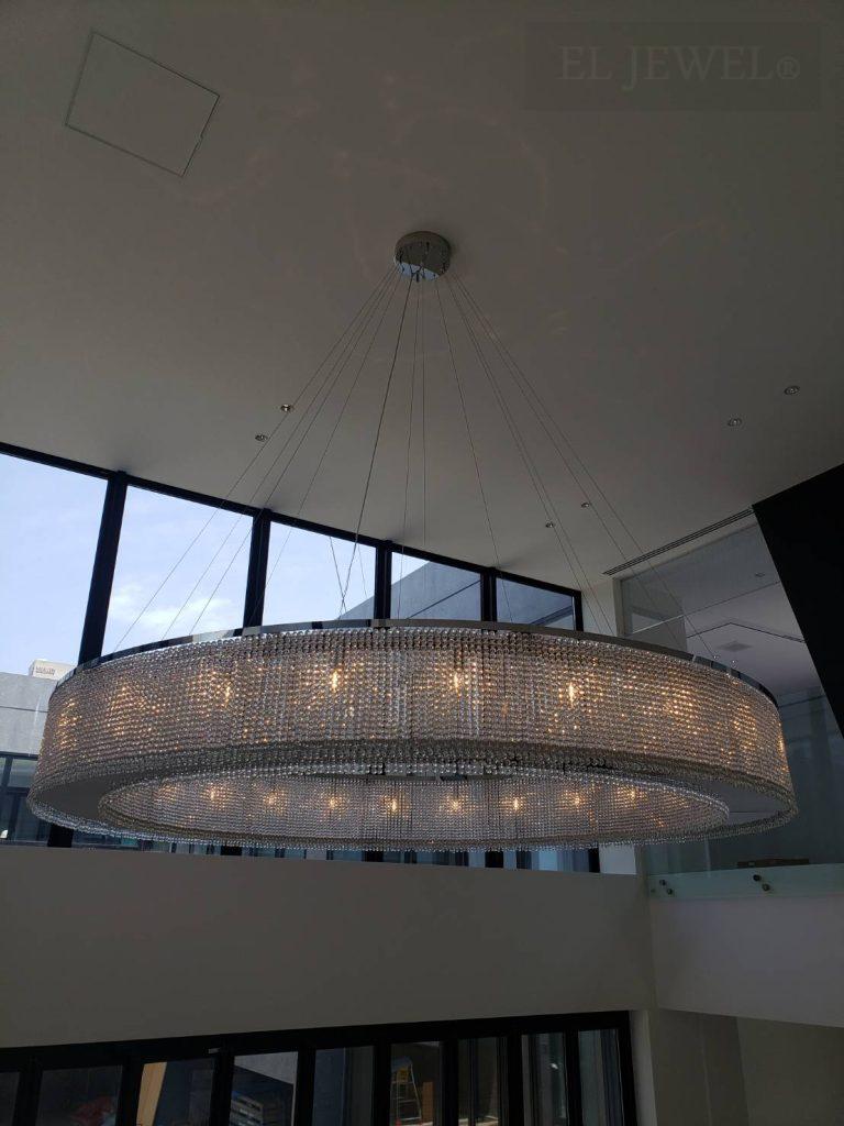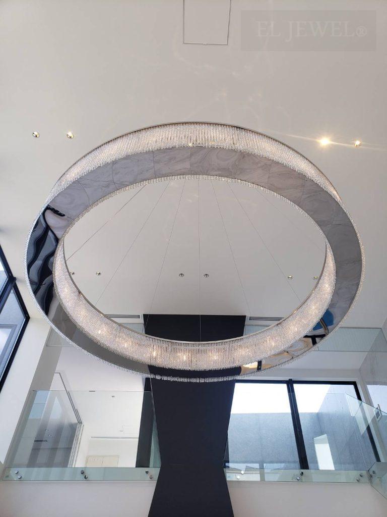 φ2400×H400mmの大型オーダーメイド・特注照明です。クロームのフレームがモダンでスタイリッシュな印象を与えます。