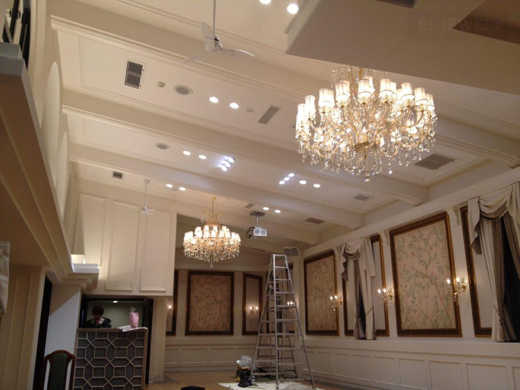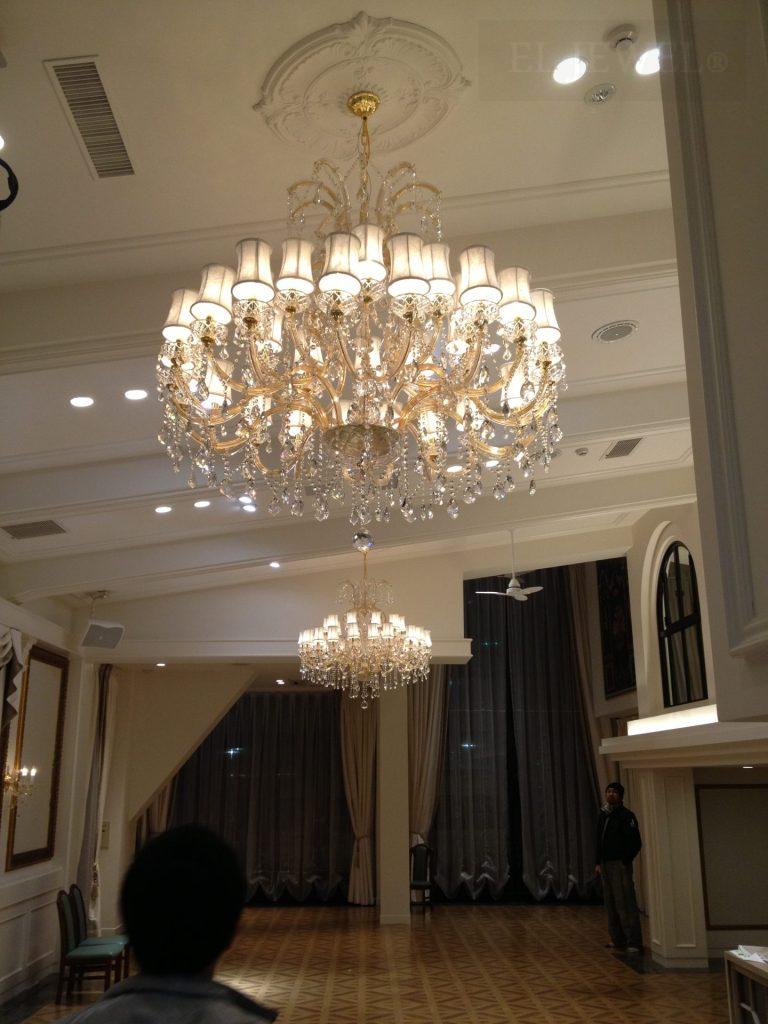 結婚式場の雰囲気を決定づける要素の一つが照明です。特にシャンデリアは、華やかさと上質さを演出するアイテムとして多くの式場で採用されています。私たちは、20年以上にわたり大型シャンデリアの販売・取付を手がけてきました。今回は、実際に納品した事例を通じて、シャンデリアがどのように式場の魅力を高めるかをご紹介いたします。