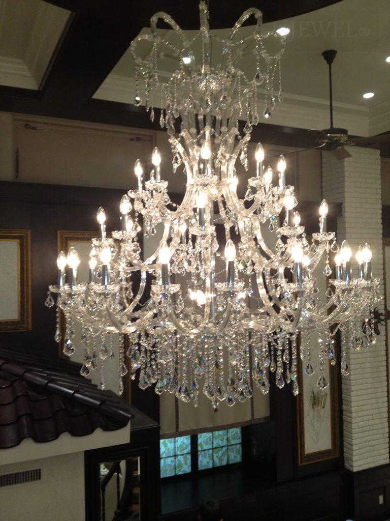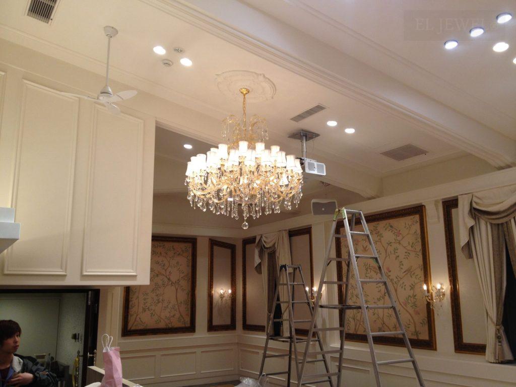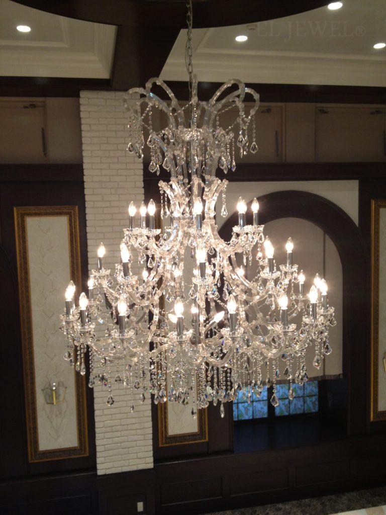 このシャンデリアは、天井の高い会場においても圧倒的な存在感を放ち、空間全体に華やかさと高級感をもたらします。