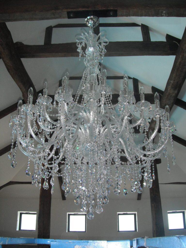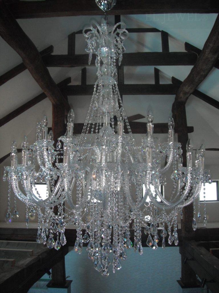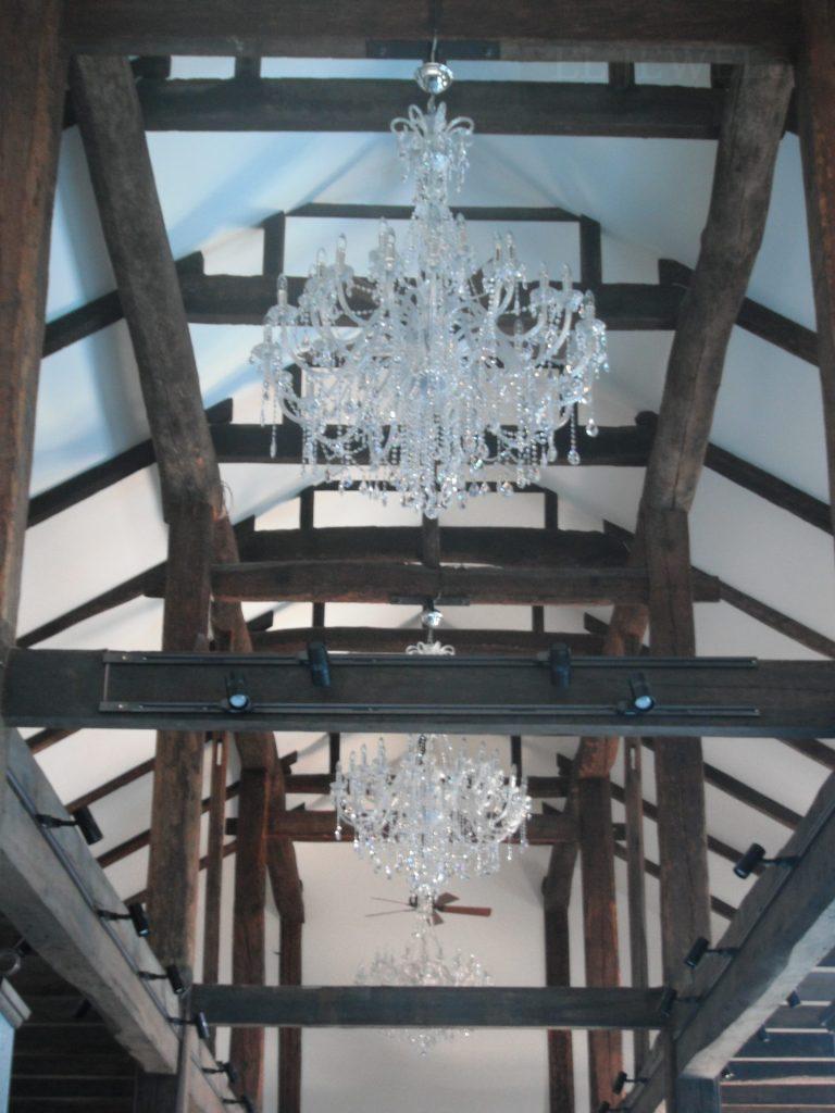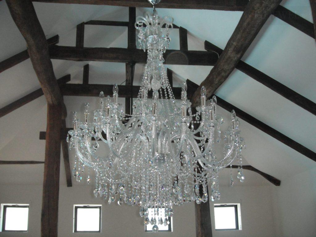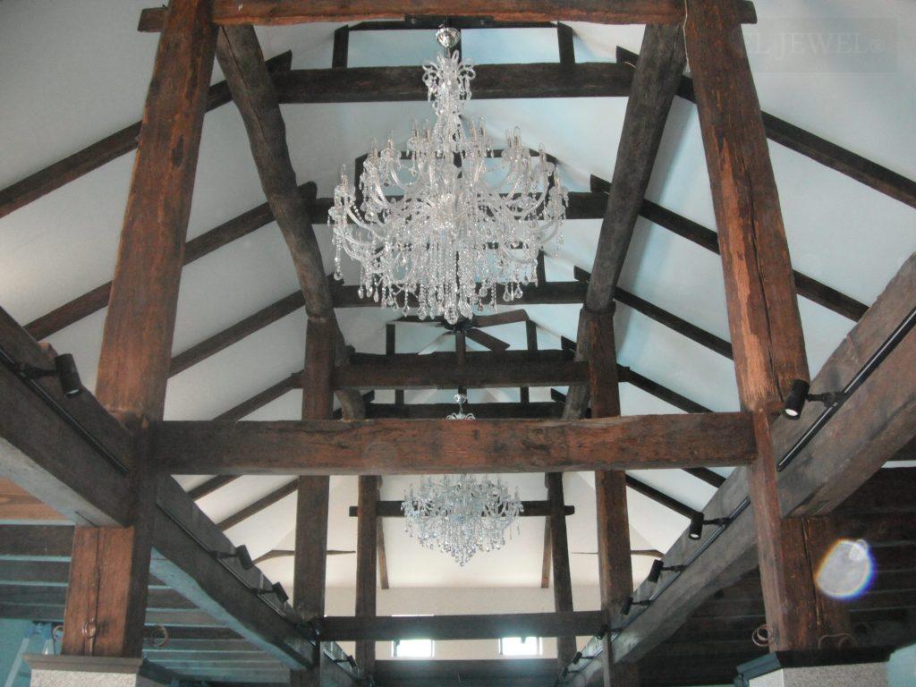 空間の大小によって、天高の高さによってシャンデリアのつけ方、ボリュームも変わってきます。ぜひお問合せください。